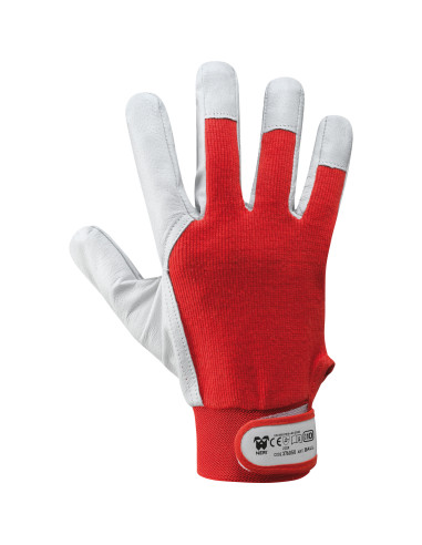 Guanti da lavoro in pelle caprina e dorso in cotone elasticizzato. Polso con chiusura in velcro. Colore variabile. Taglia secondo disponibilità.