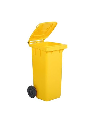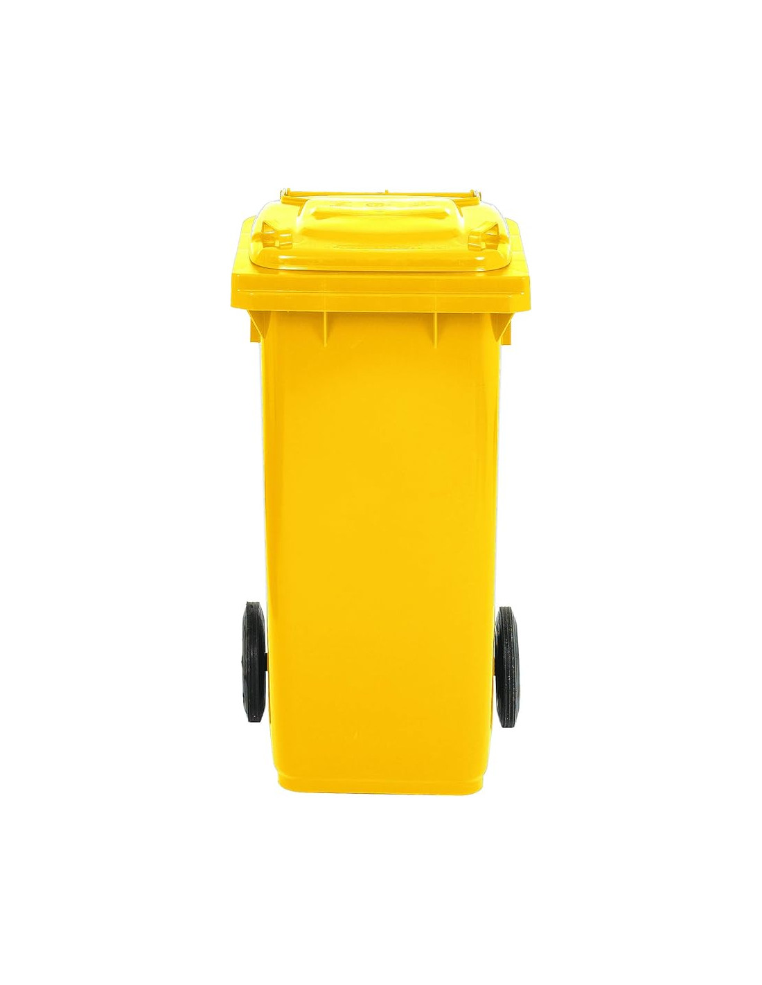 Bidone carrellato a due ruote da 120 litri, realizzato in PEHD (polietilene ad alta densità), resistente agli agenti chimici e non attaccabile dai parassiti. Lavabile e sterilizzabile.