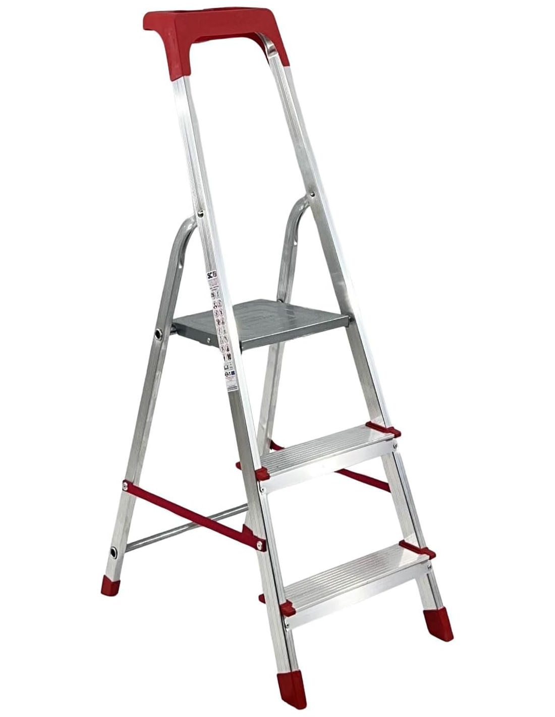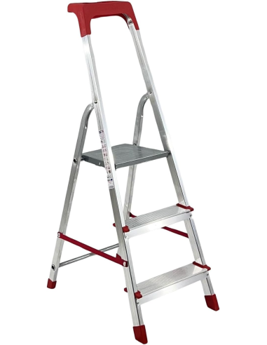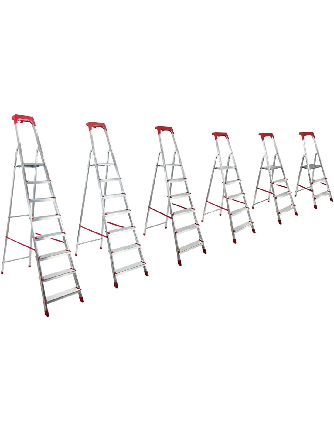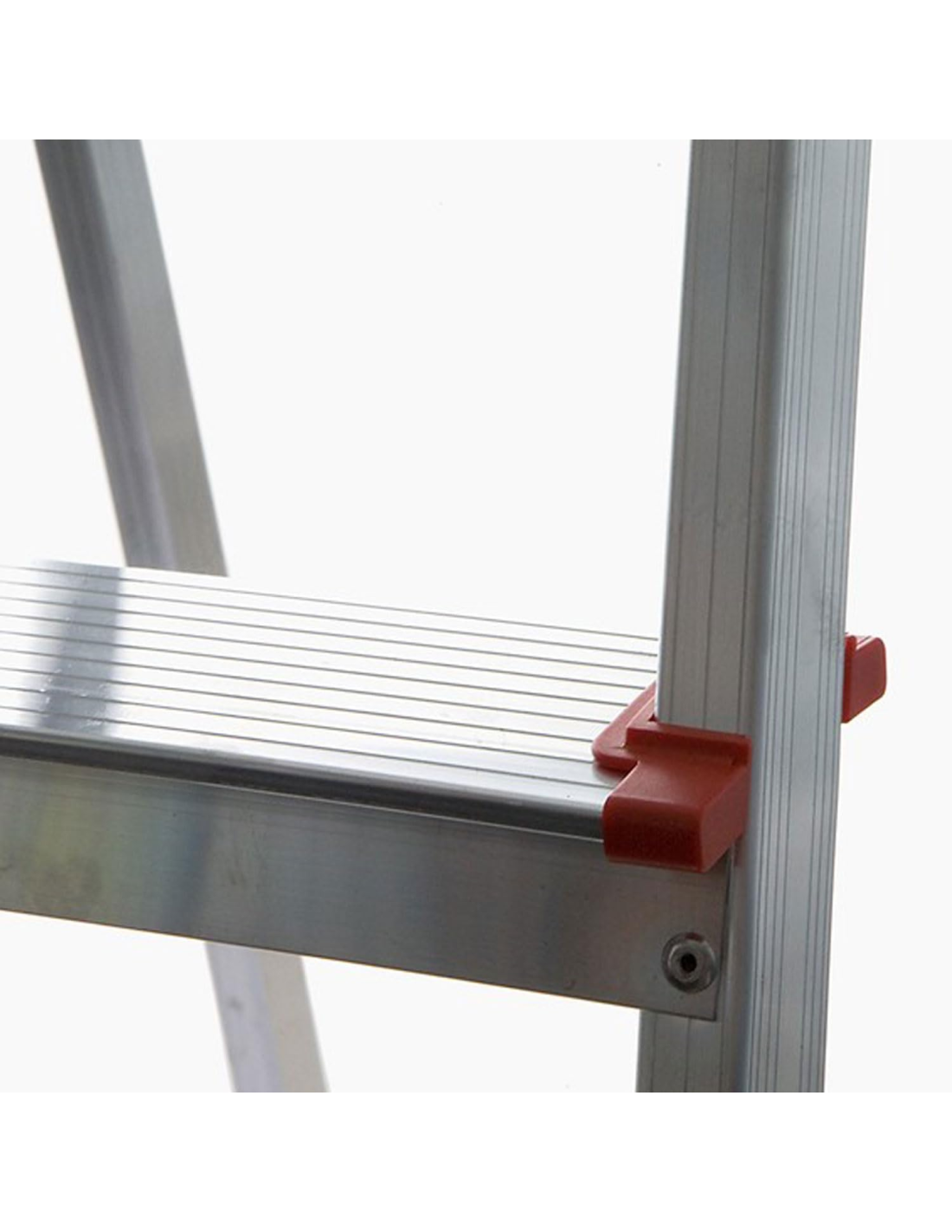 Scala domestica in alluminio estruso, leggera e resistente, ideale per uso interno. Disponibile da 3 a 8 gradini, con ampia pedana in acciaio zincato antiscivolo. Gradini con pedata da 80 mm per massimo comfort e stabilità durante l’uso. Dotata di tappi in gomma isolanti e antiscivolo per una presa sicura al suolo. Perfetta per lavori domestici, archiviazione, scaffalature o manutenzioni quotidiane.