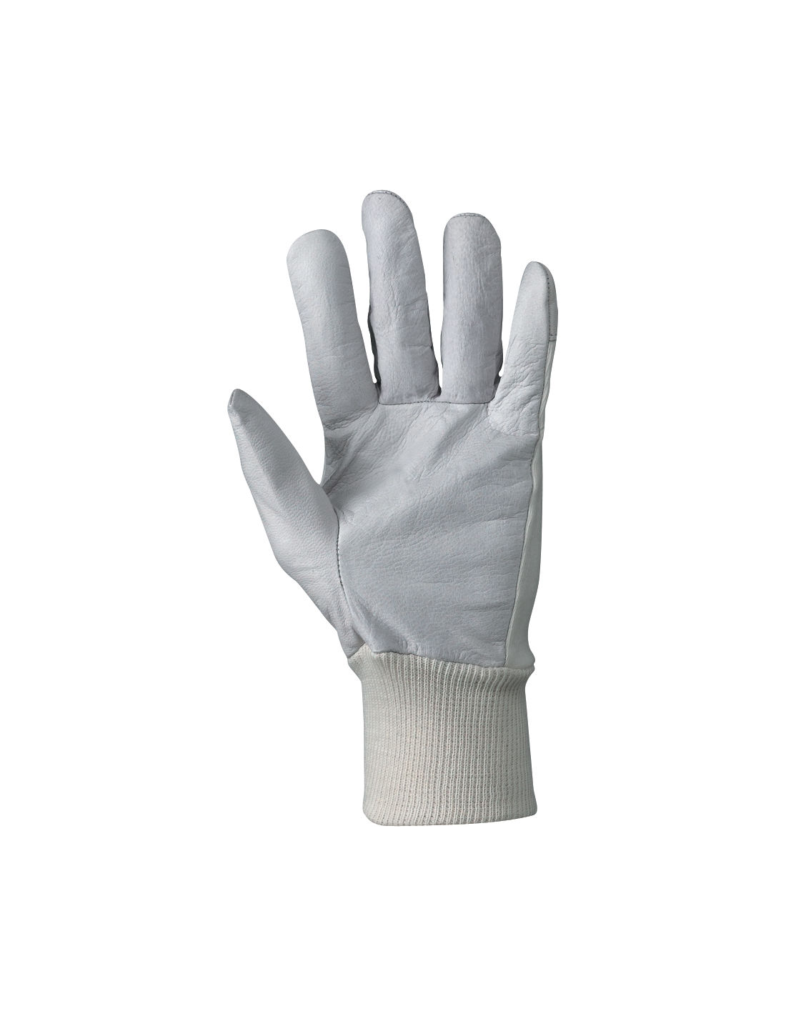 Guanti da lavoro in fiore di montone con dorso in maglia di cotone traspirante e polso elasticizzato. Taglia 10, colore bianco. Certificati EN 388: 3121X (DPI II cat.).